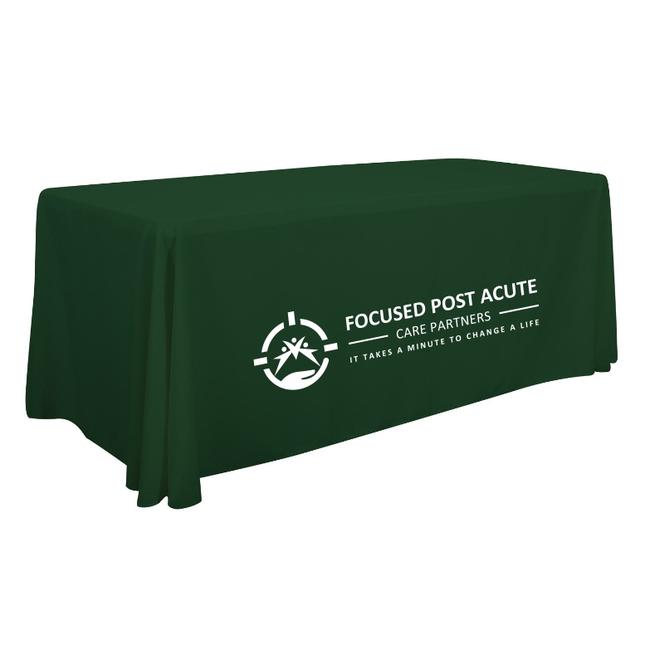 6' Table Throw - 100% Polyester Poplin Textile, flame resistant, finished rounded corners to prevent bunching on the floor.