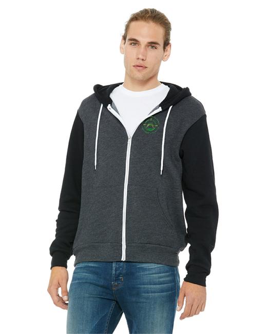 Features: Side-seamed. Retail fit. Unisex sizing. Full zip closure with white taping. Ribbed cuffs and waistband. Kangaroo pockets. White chord drawstring.