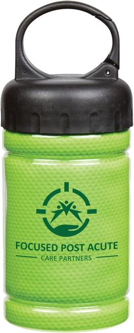 Made of soft PVA material with a mesh-like construction. Clear plastic case for easy and convenient storeage. Easy carry handle with built-in carabiner for attaching. Towel size is approximately 11 3/4" x 31"L. Super quick absorbingand quick drying towel. Reusable.