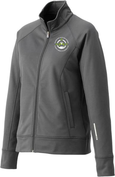 This 100% polyester jersey knit jacket has a brushed back detail and is equipped with mesh pocket bags.