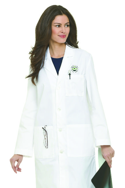 Long coat with traditional collar and four-button front closure. One breast pocket and two lower double pockets. Two side-entry pockets on seam. 65% Polyester/35% Combed Cotton Medium length: 39"